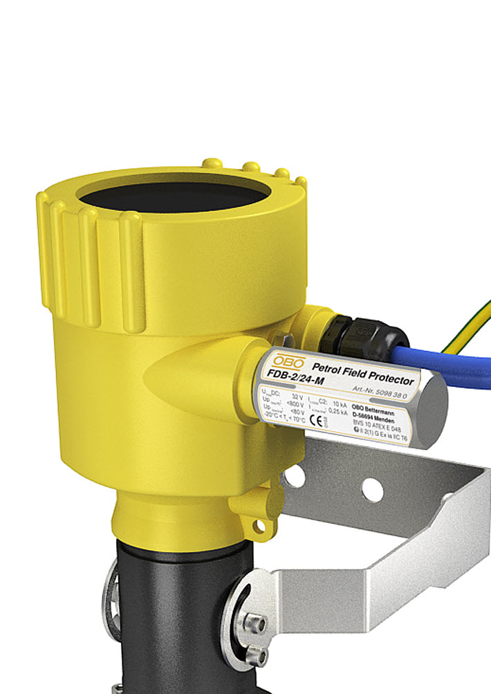 在具有潛在爆炸性氣體的地區(qū),必須使用絕緣,密封的火花間隙,并經(jīng)批準(zhǔn)在潛在爆炸性區(qū)域使用,以進(jìn)行等電位連接。 OBO Parex火花隙使系統(tǒng)部件免受腐蝕電流的影響,滿足在潛在爆炸區(qū)域連接的要求。