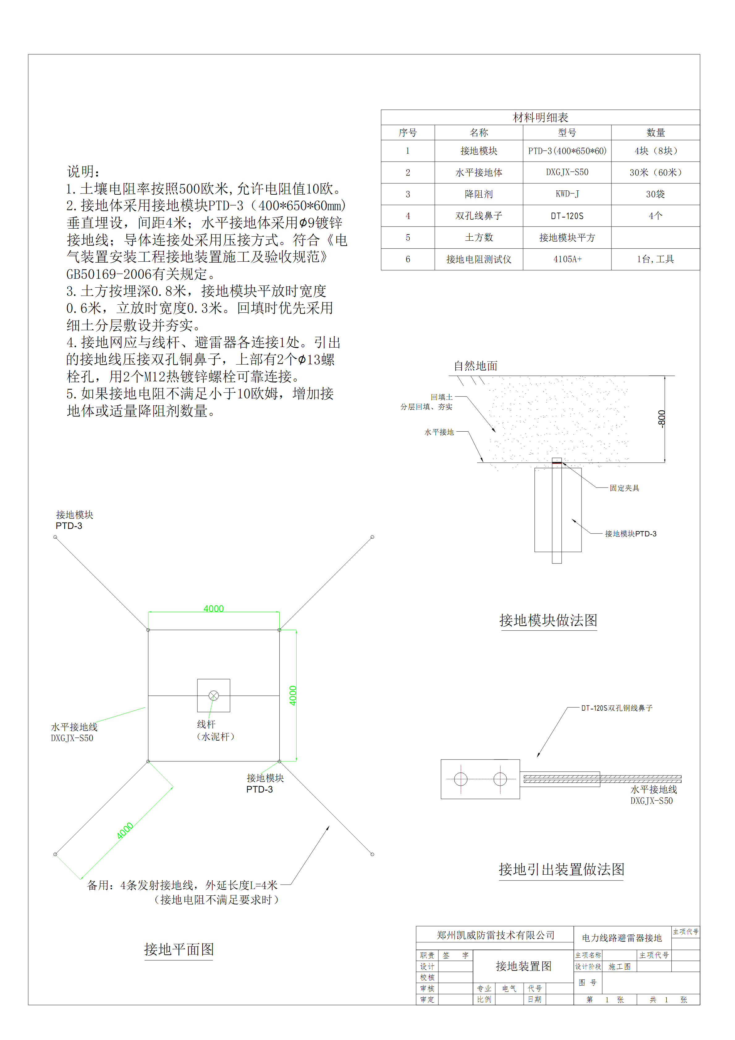 本接地網(wǎng)制作圖主要是針對線路桿塔(水泥桿)設(shè)計,鐵塔可以參考此做法。